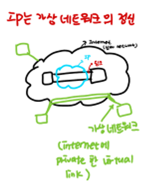 - 전용선 대신 공용 네트워크를 이용하여 사설망을 구축한다. (가상 link 만들기)