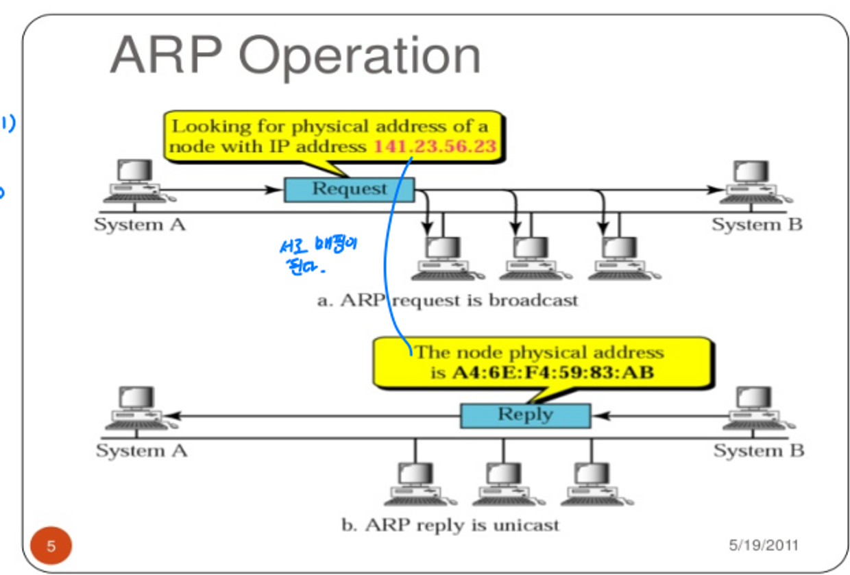 - Ex. IP주소 ⇒ 이더넷 주소