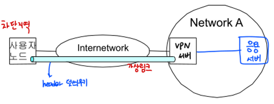 - 차단 지역의 노드와 해당 서버 사이에 가상 링크 ⇒ VPN
