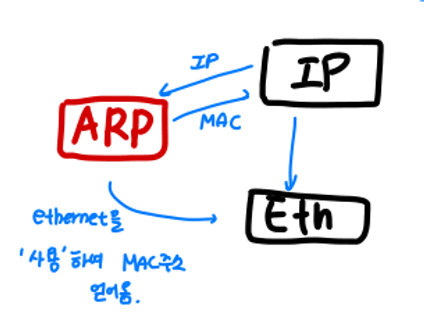 - IP 계층으로부터 IP 주소를 받고 MAC 주소를 돌려준다.