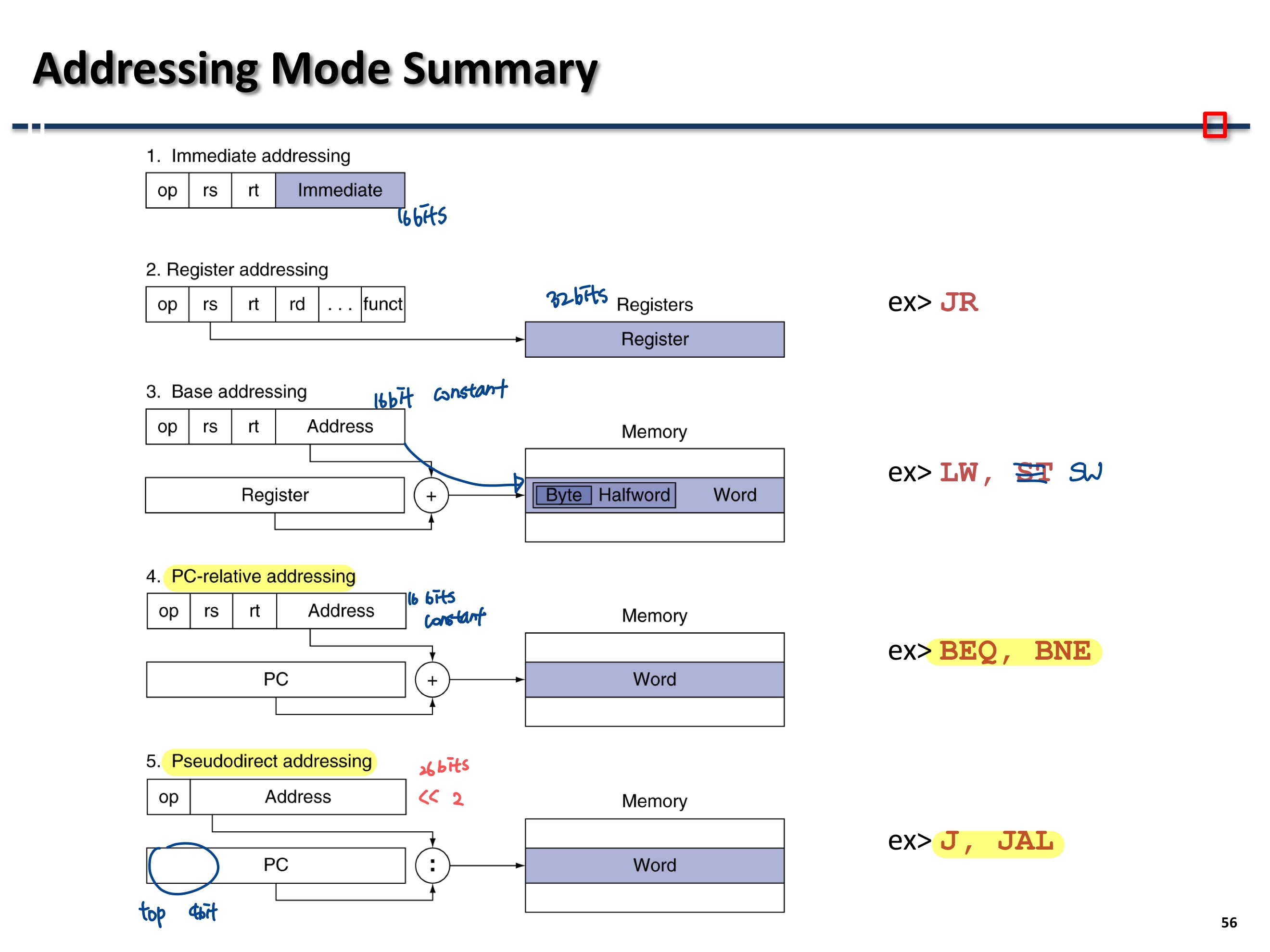 - PC가 현재 이 위치에 있다는 것은 PC에 PC+4의 값이 들어가 있는 것이기 때문에, 실제 연산은 (PC + 4) + offset * 4이다.