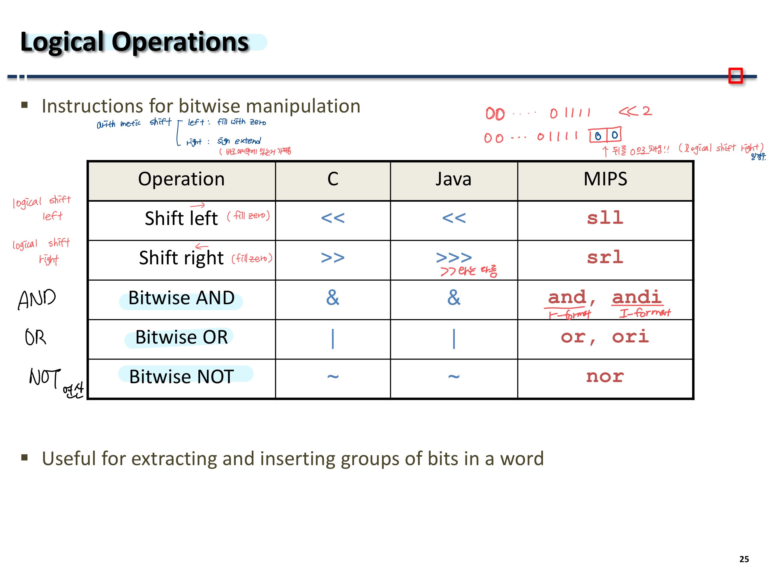 주의할 점은 logical shift right, left인 경우에는 shift 결과 후 앞 또는 뒤를 0으로 채워야 한다.