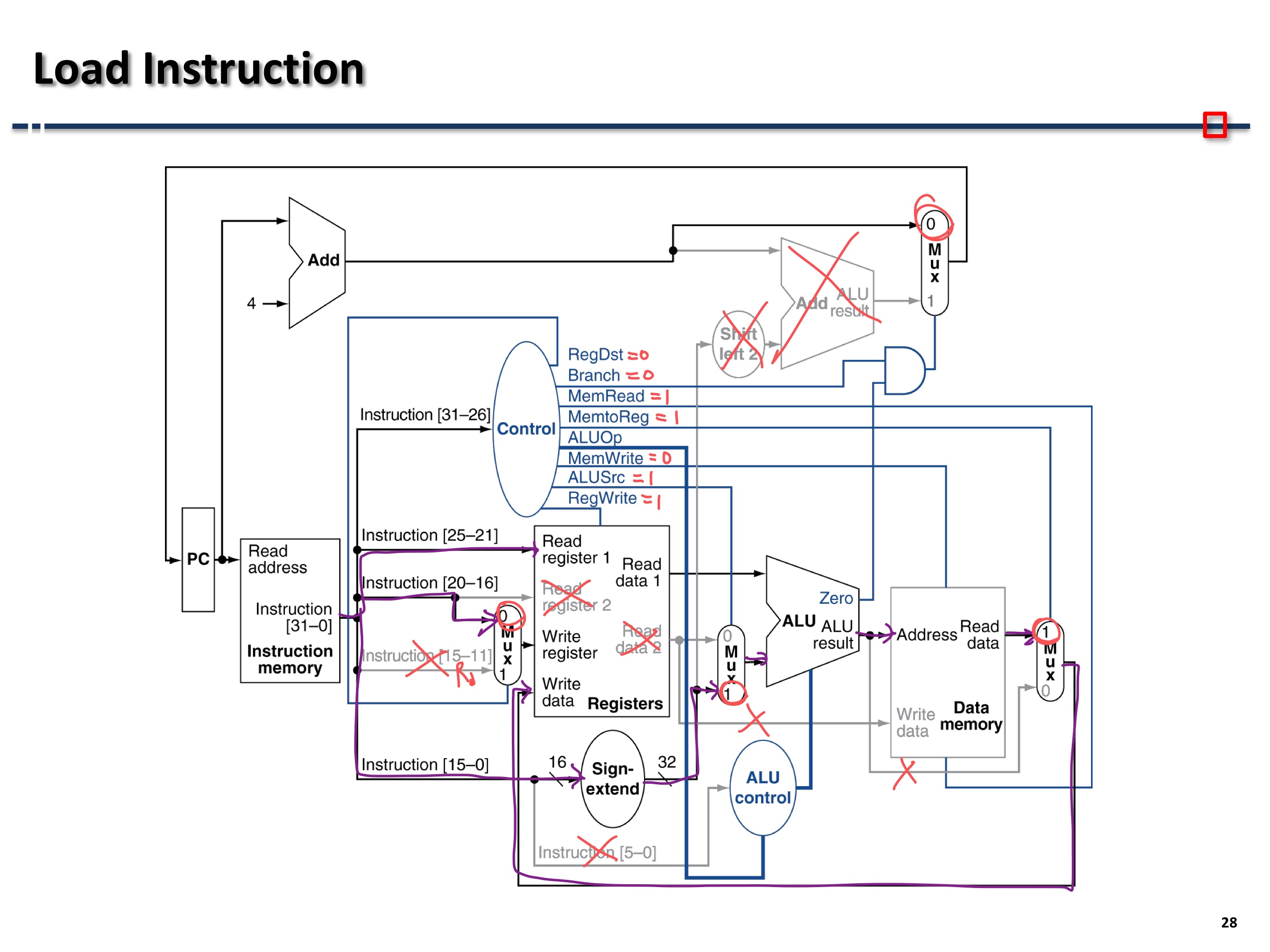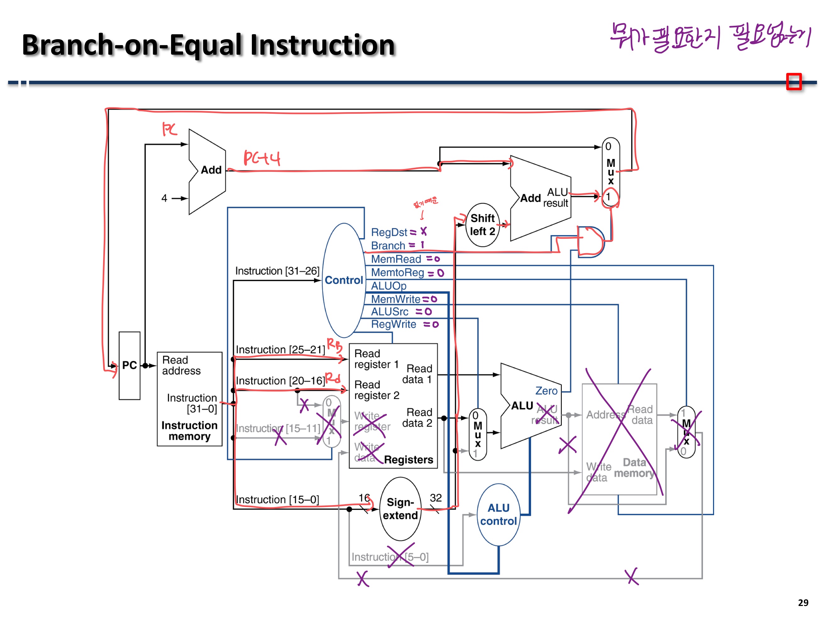 Sign-extend 필요 없음 (주소값 갖고 있지 않음) + 주소값에 PC Add하는 Adder 필요 없음