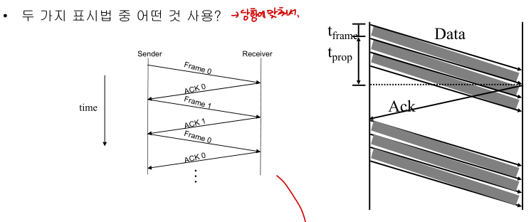 송신 - Sliding window, Go-Back-N / 수신 - stop & wait → stop&wait에 맞춘다.