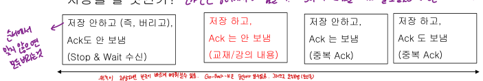 - 버퍼링은 안 해도 되지만 교재에서는 버퍼를 유지하면서 순서가 바뀐 데이터를 수신한다고 가정한다.