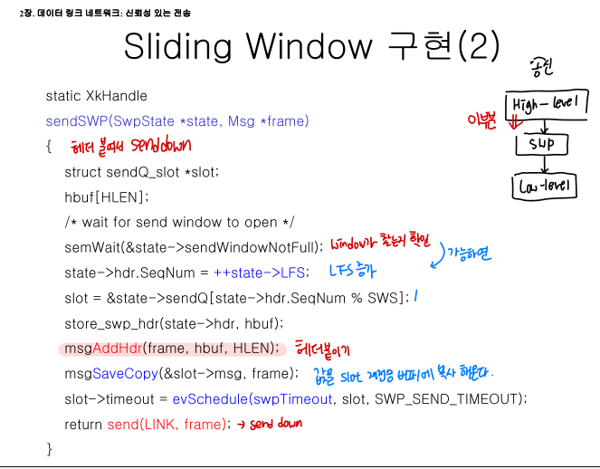 - 슬라이딩 윈도우는 바로 그 위에서 동작 → 디바이스 드라이버와 연동하는 시스템 소프트웨어