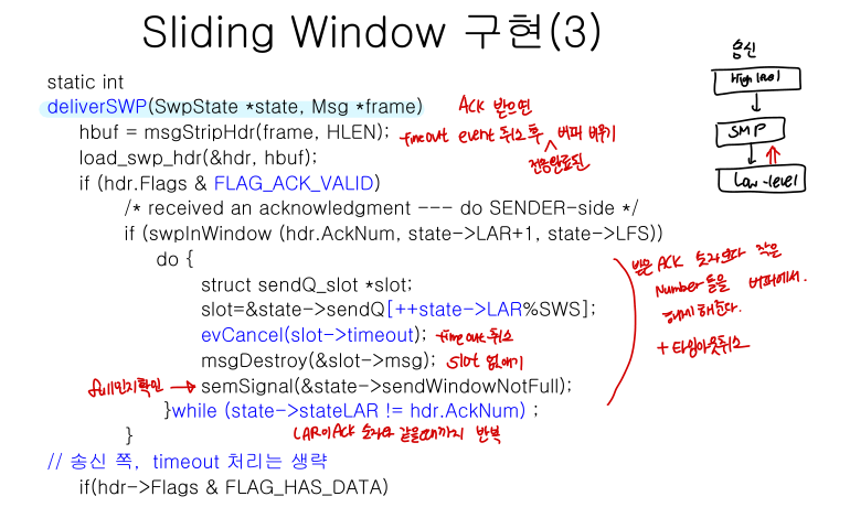- 담당 기능에 따라 세부 동작이 정해진다 (슬라이딩 윈도우 - 오류 제어)