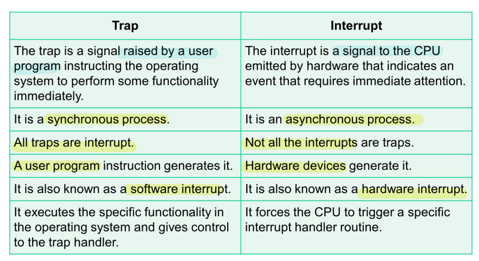 - Trap 은 다양한 요인으로 발생할 수 있는 software-produced interrupt