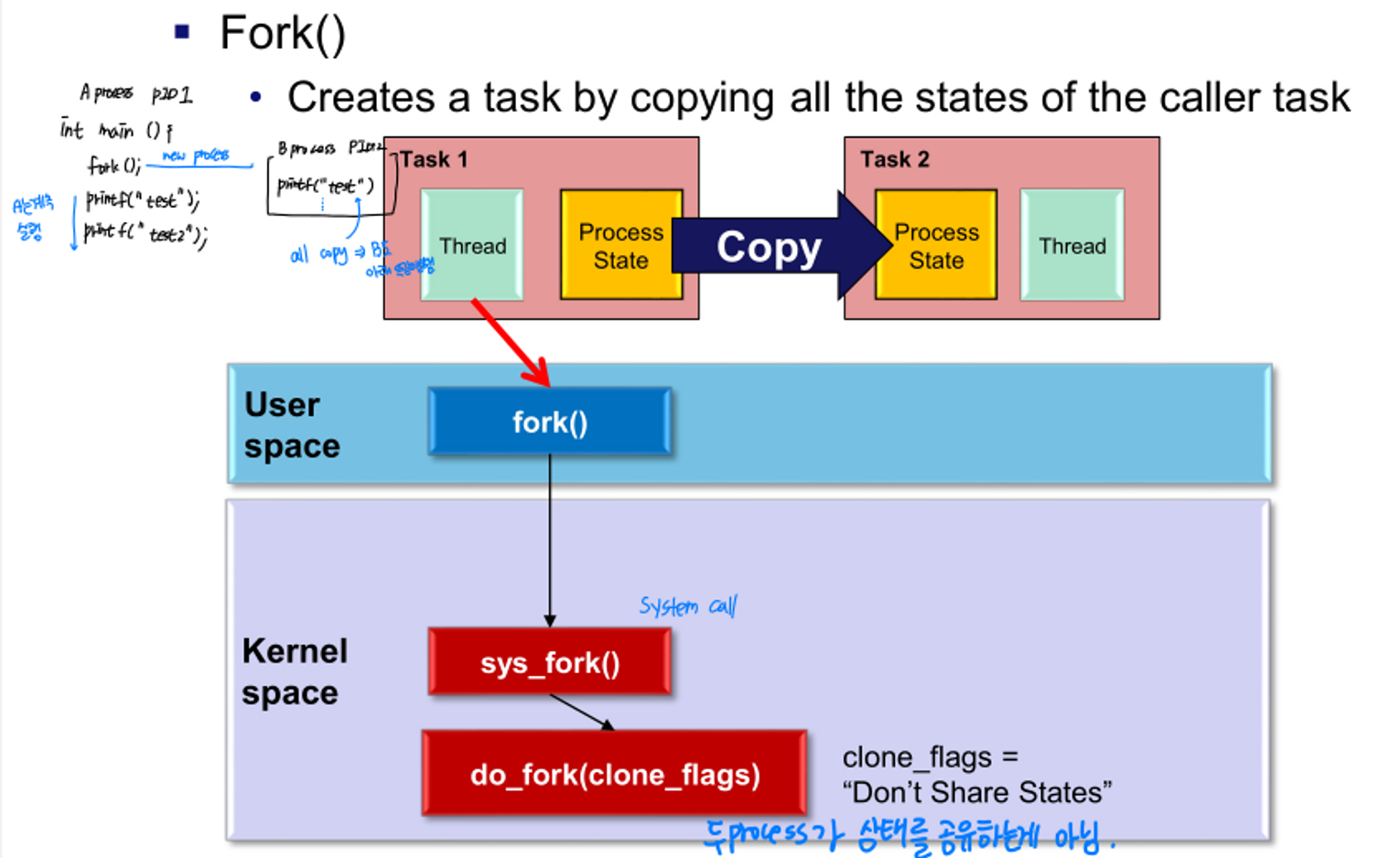 - call wake_up_new_task() : runqueue의 head에 새롭게 생성된 task를 두기