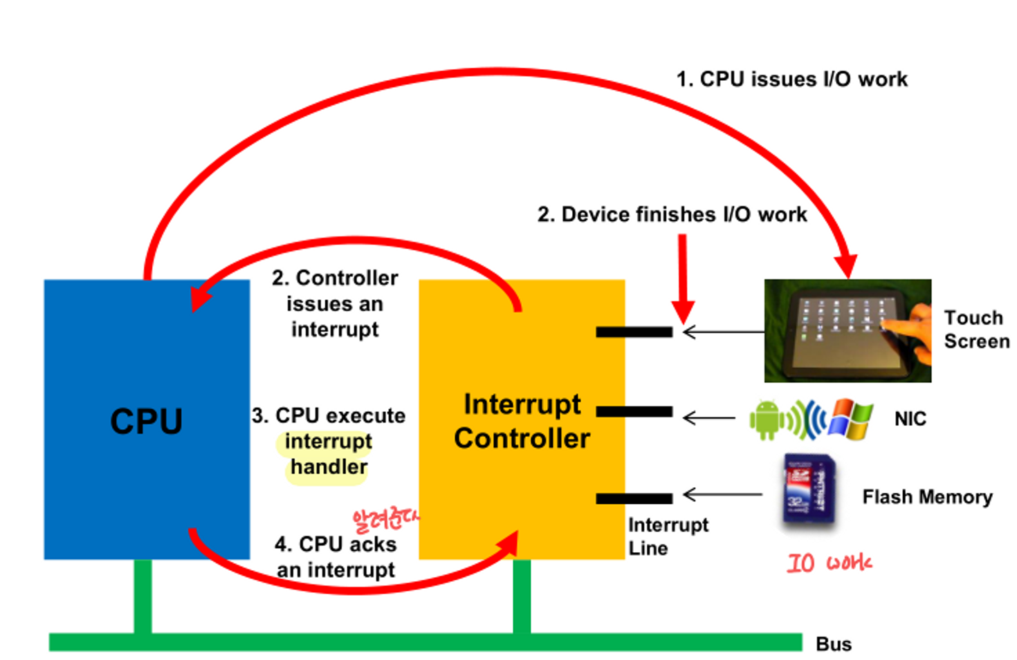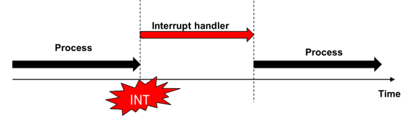 - interrupt는 event가 제때 처리될 수 있도록 processor가 현재 실행 중인 코드를 interrupt하기 위한 요청