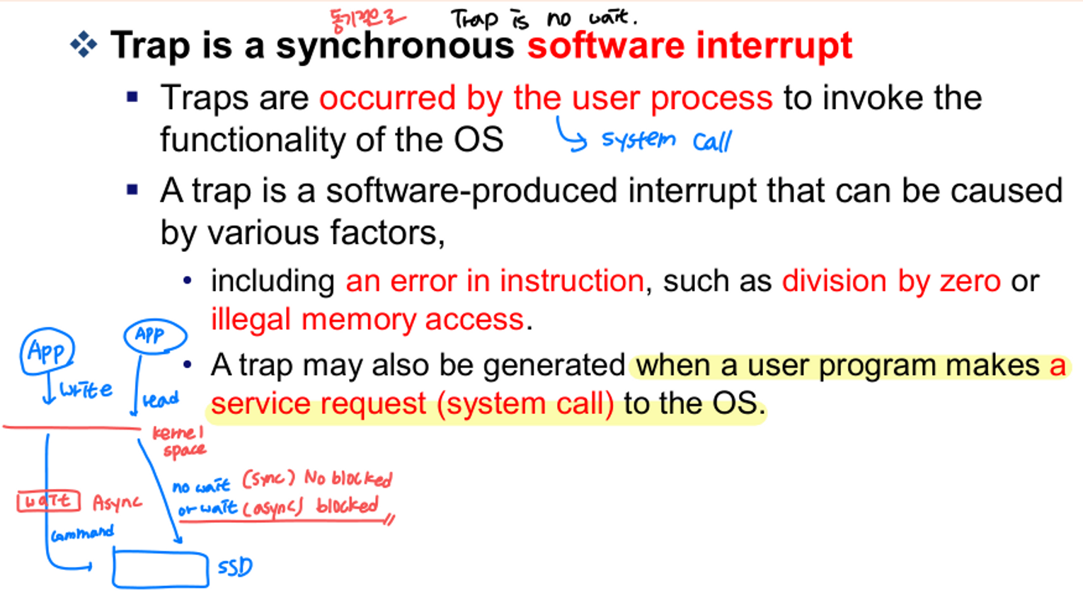 - Trap 은 다양한 요인으로 발생할 수 있는 software-produced interrupt