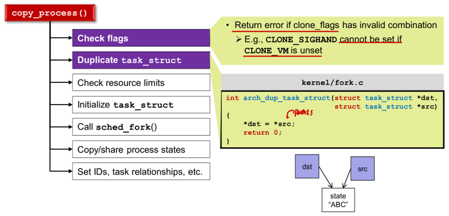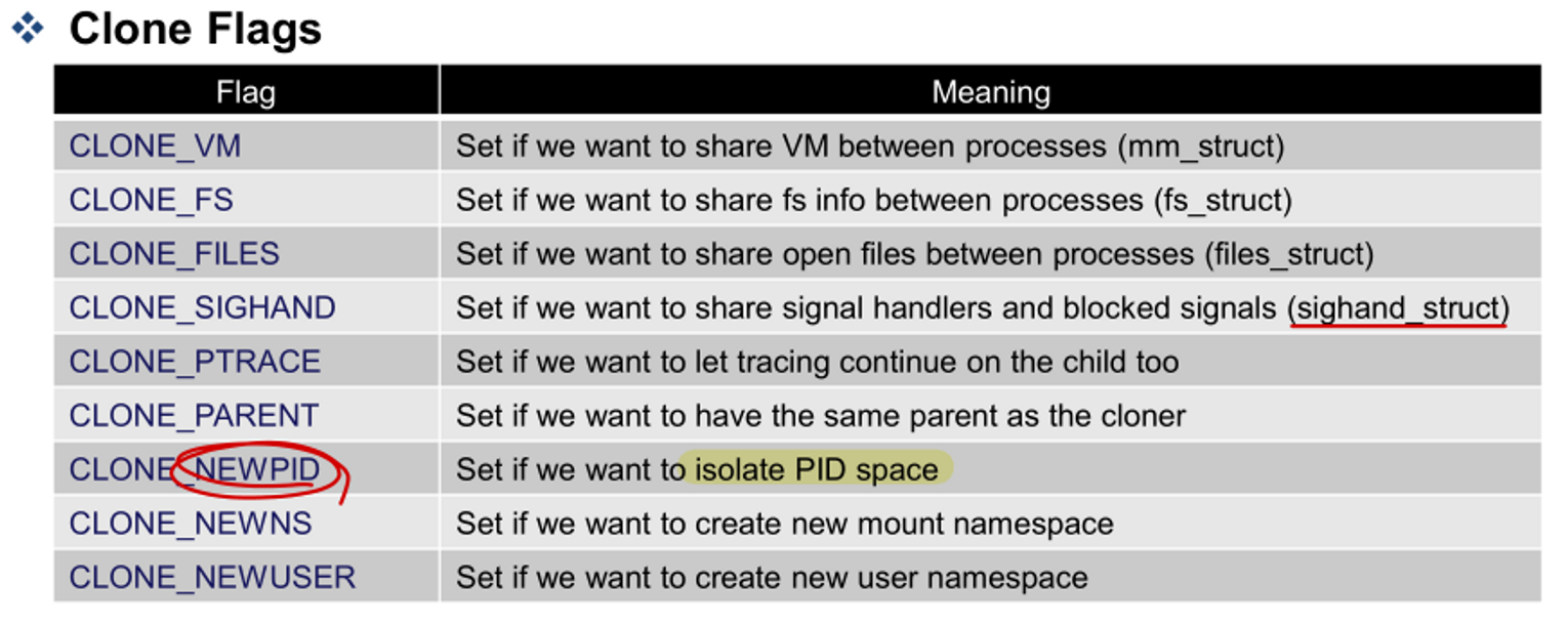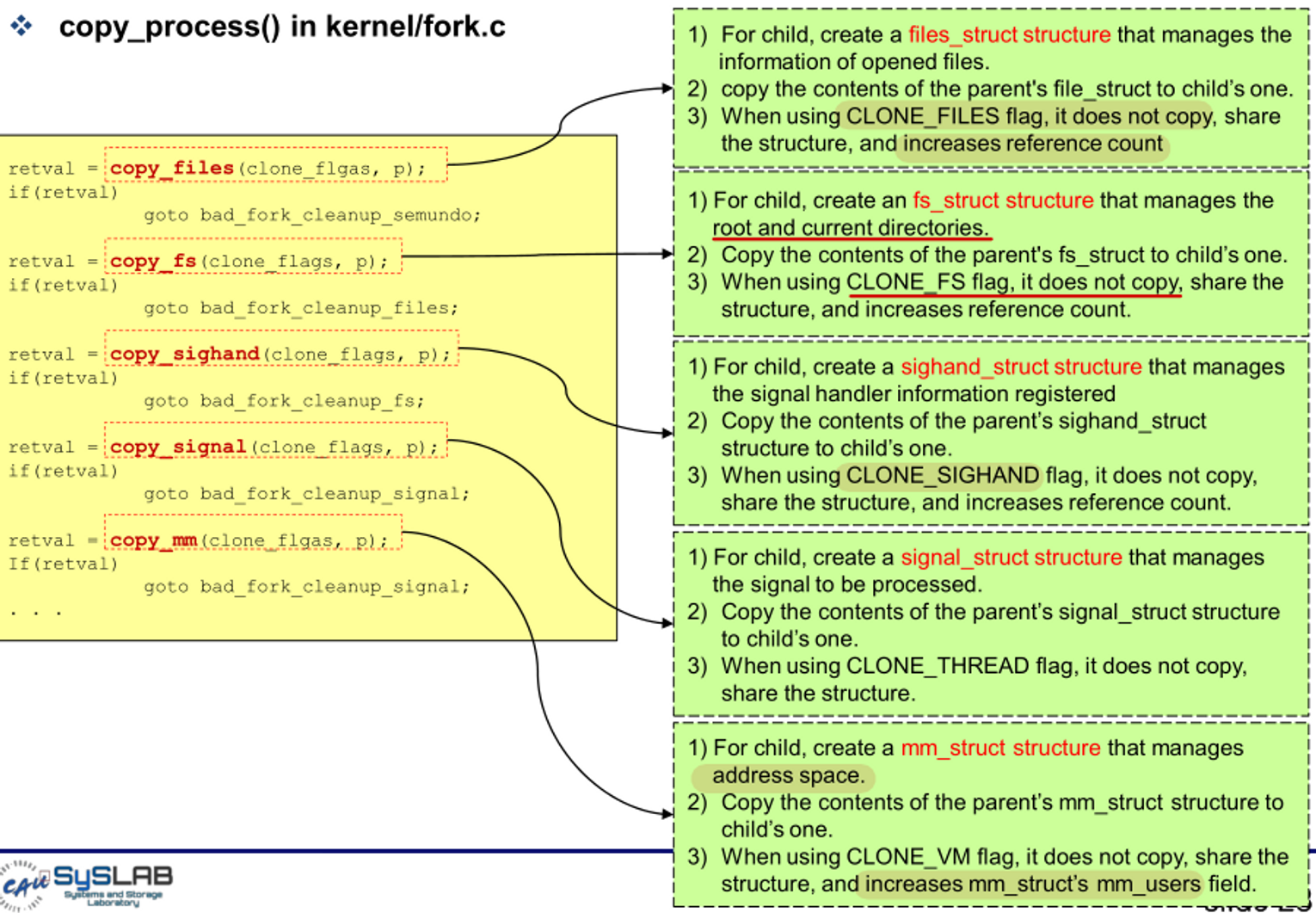 - CLONE_SIGHAND : flag가 enable되면 복사하지 않고 공유. reference count 1 증가