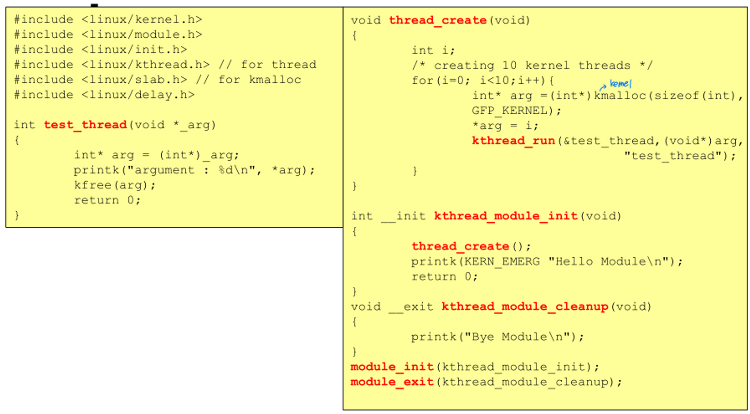 ⇒ kernel thread를 생성하기 위해서는 kthread_create를 사용한다.