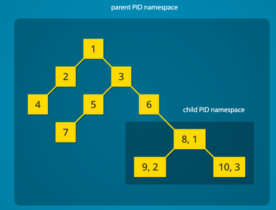 - PID namespaces isolate the process ID number space, meaning that processes in different PID namespaces can have the same PID