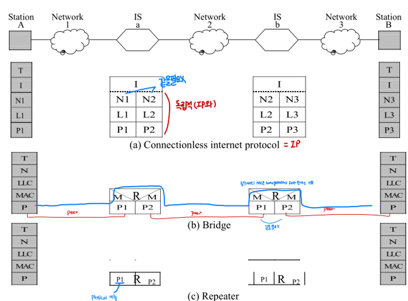 - 다양한 네트워크들을 링크(link)로 간주해서 그대로 사용 (이질적 네트워크 연결)