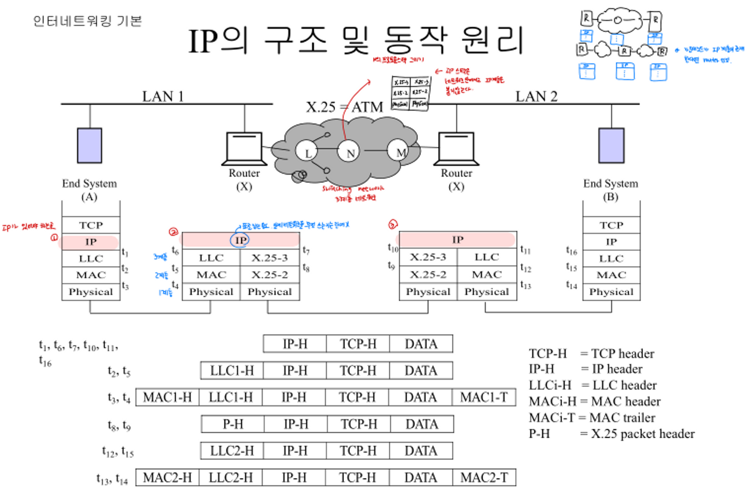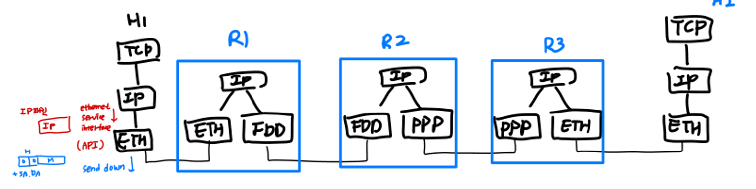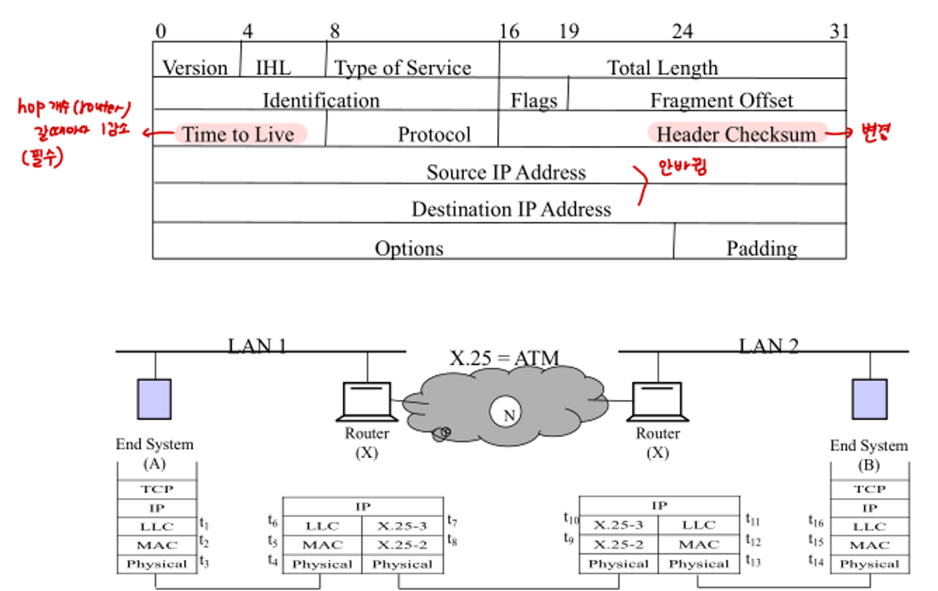 - 네트워크 안의 노드에는 IP 계층 포함 X (자기가 포함된 네트워크이기 때문에)