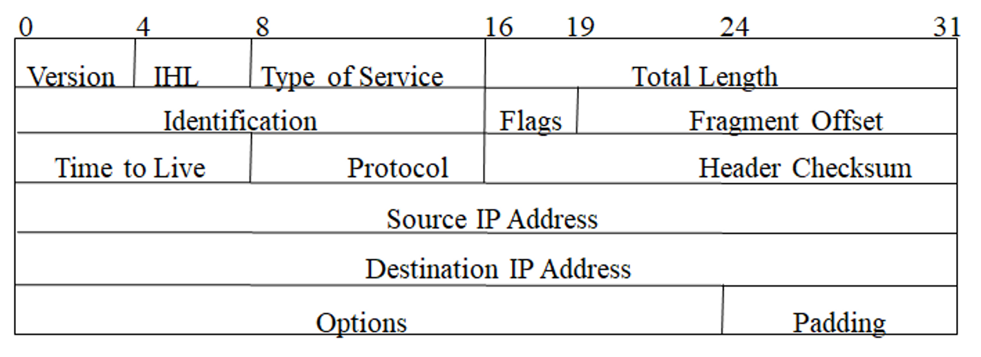 - Flags / Fragment Offset (16) : 단편화 (fragmentation)에 사용된다.
