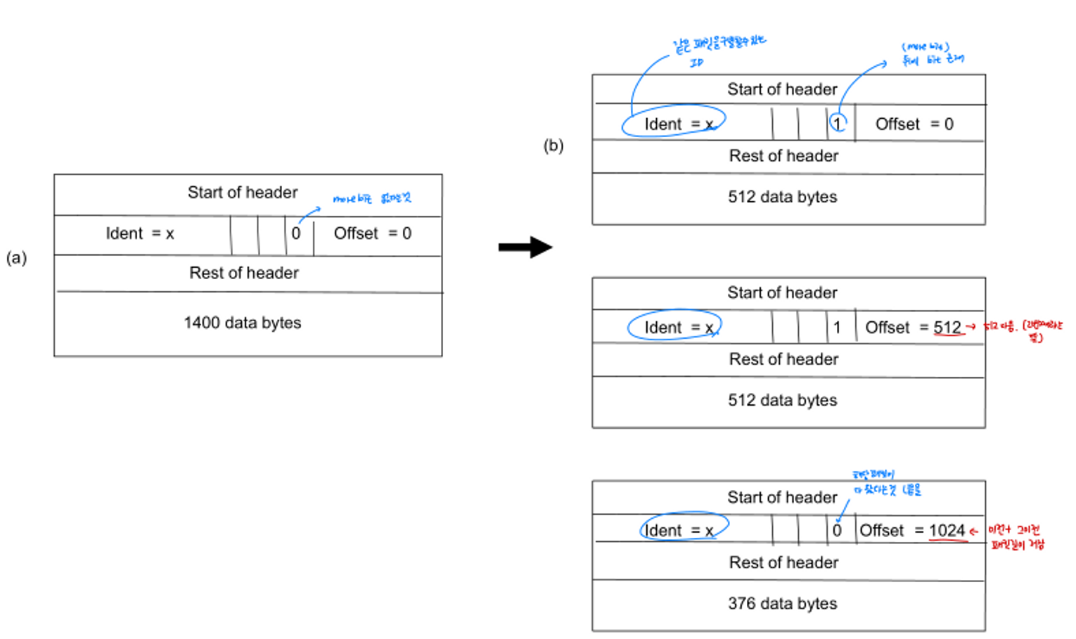 - 서로 다른 크기의 패킷이 전달된다. (네트워크마다 크기 표준이 다름)