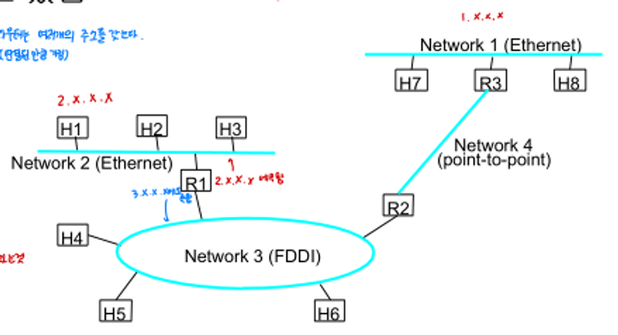 - 같은 네트워크에 있는 노드들의 네트워크 주소 부분은 같아야 한다.