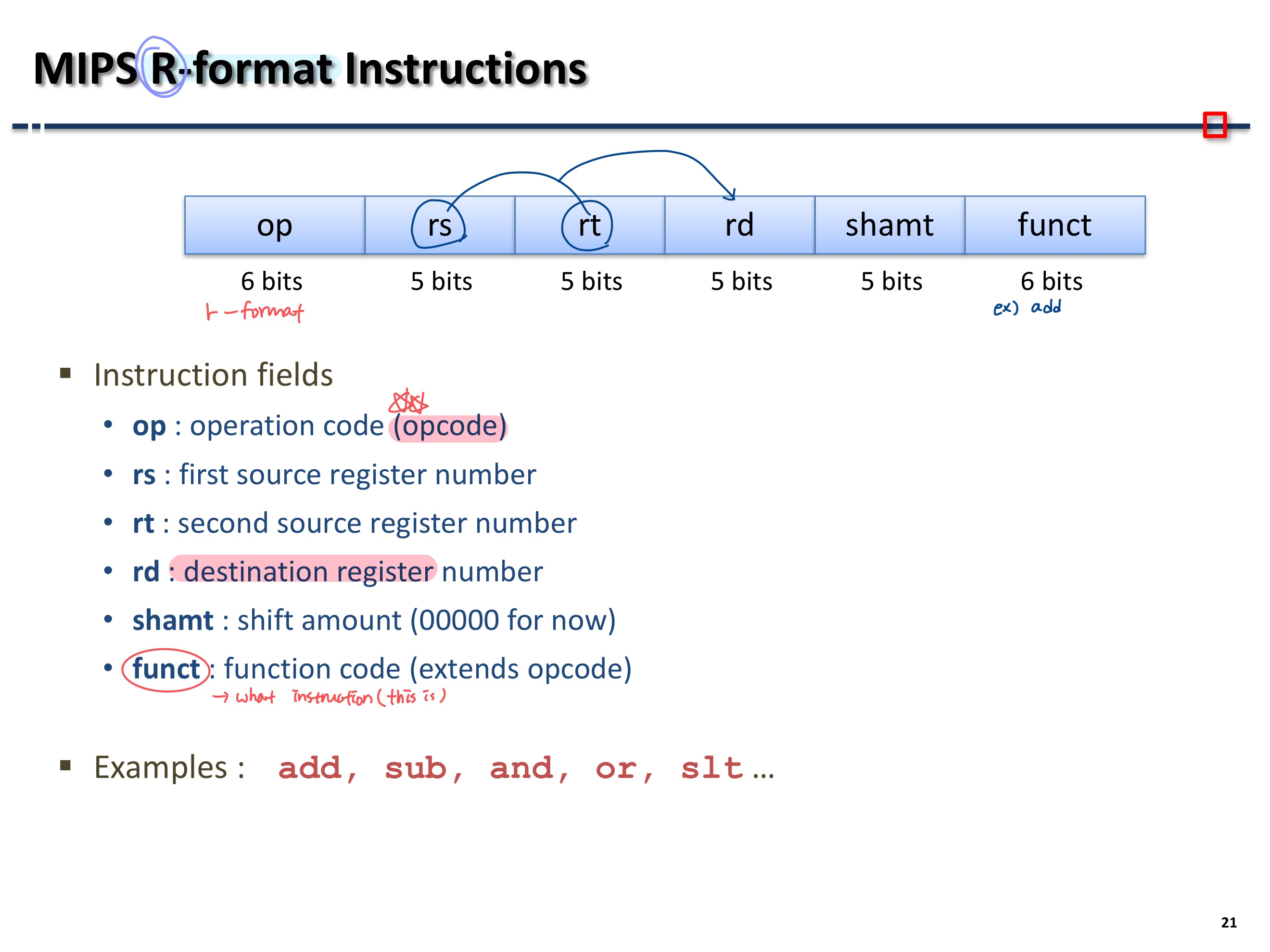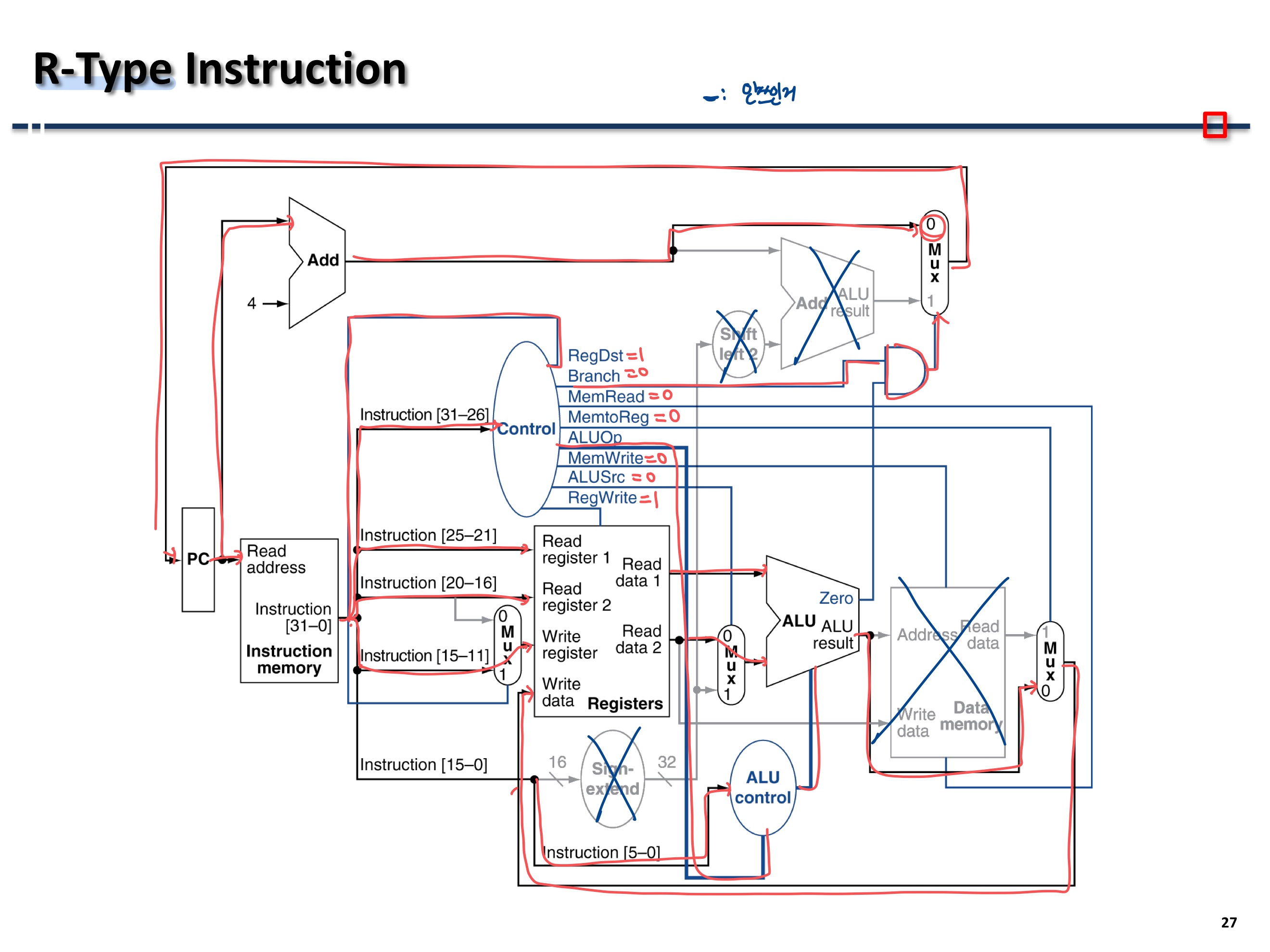 Directed mapped cache Block address = memory address / block size 여기서 block size는 byte 단위임 Block number = block address % block 개수 offset bit 수 = block 당 byte의 지수 값 (Ex. 8이면 offset bit 수는 3) index bit 수 = block의 개수의 지수 값 (64 blocks 면 index bit 수는 6) Tag bit 수 = 32 - index bit 수 - offset bit 수 tag : 보다 확실한 정보를 위해 앞쪽 비트 정보도 필요해서 기록하는 것 valid bit : 이 정보가 정말 유효한 정보인지 확인하는 것 Ex) 예제 8-blocks, 1 word /..