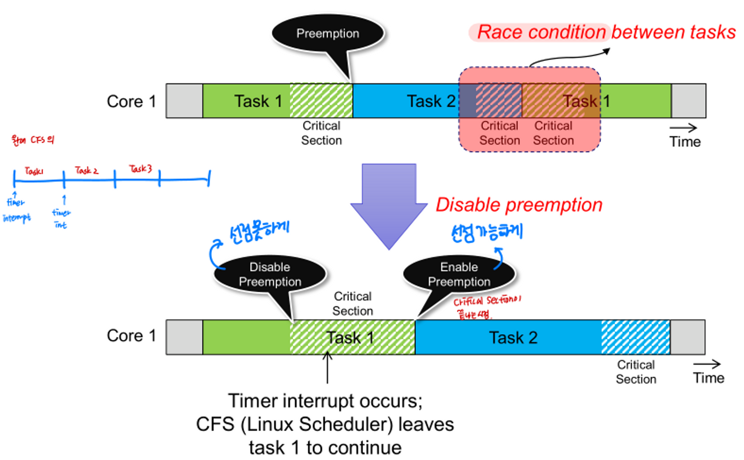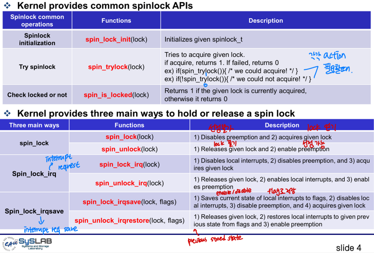 리눅스 시스템 응용 설계 term project였던 리눅스 커널 분석이다. Mutex 코드 분석을 맡았고, 분석했던 걸 정리하였다. 딥한 부분을 다루기보다는 Mutex의 코드 프로세스에 초점을 두었다. kernel version은 linux 5.4.214이다. Mutex 개념 정의 한 스레드, 프로세스에 의해 소유될 수 있는 key를 기반으로 한 상호배제기법 자원에 대한 접근을 동기화하기 위해 사용 프로그램이 시작될 때 고유한 이름으로 생성 Locking 메커니즘 오직 하나의 스레드만 동일한 시점에 mutex를 얻어 critical section에 들어올 수 있다. 또한 오직 이 스레드만이 critical section에서 나갈 때 mutex를 해제할 수 있다. Mutex Busy Waiting? CPU..