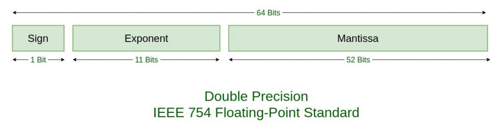 - Double precision (64-bit) : double in C (이게 double 이 double인 이유)